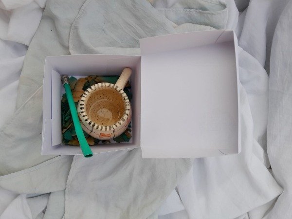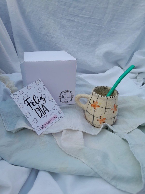 Box incluye cajita, mate, bombilla y tarjeta feliz dia